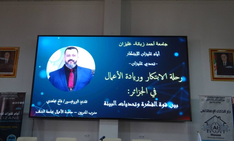 أشرف صباح اليوم الأحد 08 فيفري 2026 السيد مدير الجامعة البروفيسور بحري_أحمد رفقة السيد كمال_بركان والي ولاية غليزان على الإفتتاح الرسمي لفعاليات المسابقة الوطنية أيام غليزان للابتكار في طبعتها الثانية التي تحتضنها جامعة أحمد زبانة من 07 إلى 09 فيفري الجاري تحت شعار ” مبتكر اليوم …… صانع الغد ” ، بحضور كل من الأمين العام للجامعة السيد بوزار_رشيد ، السادة نواب مدير الجامعة، السادة عمداء الكليات ، مدير الخدمات الجامعية لولاية غليزان السيد بوزير_شافعي، أساتذة وموظفي وطلبة الجامعة.