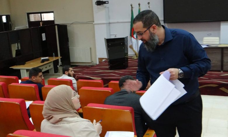 أشرف السيد نائب مدير الجامعة للتكوين العالي والتكوين المتواصل والشهادات أ.د محمد_مقدم على امتحانات نهاية التكوين لطلبة الدكتوراه في مواد التعليمية والفلسفة والذكاء الاصطناعي بحضور السادة الأساتذة منسقي مواد التكوين التكميلي والسادة نواب العمداء لما بعد التدرج والعلاقات الخارجية للكليات حيث جرت الامتحانات في ظروف تنظيمية محكمة .