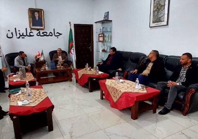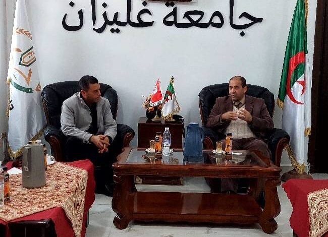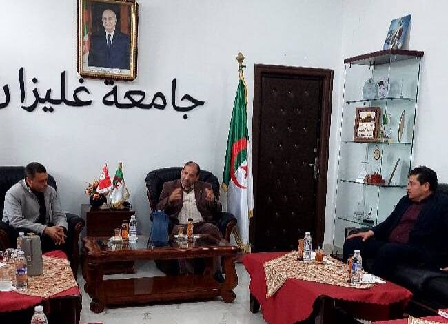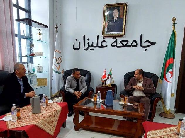 إستقبل أمسية يوم الأربعاء 11 فيفري 2026 السيد مدير الجامعة البروفيسور بحري_أحمد رفقة الطاقم الإداري لجامعة أحمد زبانة غليزان السيد مهدي_حدادة مدير مركز التشغيل و المقاولتية و الحاضنات بجامعة_سوسة(تونس) و السيد جمال_غراسة مدير العلاقات الخارجية و التعاون و ذلك لمباشرة ندوات تنسيقية في مجال المقاولتية و الحاضنات و ريادة الأعمال ستكلل بإبرام_إتفاقية ملحق بين حاضتني الأعمال للجامعتين .