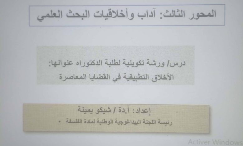 تتواصل عملية التكوين التكميلي لطلبة الدكتوراه دفعة 2024-2025 حيث أشرف الأستاذ جمال_خن على تقديم محاضرة في فلسفة العلوم والمناهج تحت عنوان ” الأخلاق التطبيقية في القضايا المعاصرة ” .