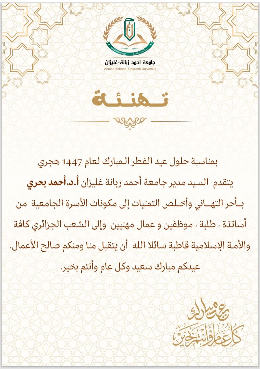 الرئيسية/آخر الأخبار/تهنئة عيد الفطر المبارك آخر الأخبار تهنئة عيد الفطر المبارك أقل من دقيقة Post Views: 261 أقل من دقيقة فيسبوك X لينكدإن بينتيريست ماسنجر ماسنجر مشاركة عبر البريد طباعة